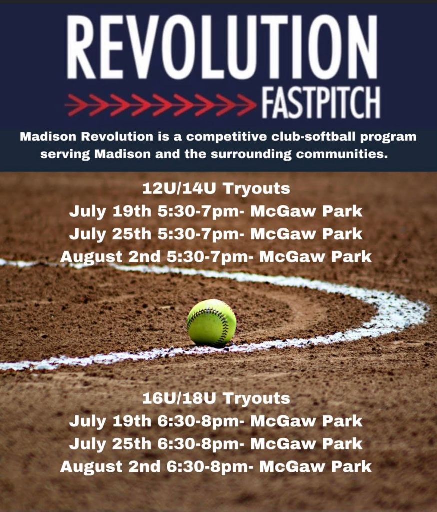 Madison Revolution, Madison’s fastest growing Softball Club, has announced tryout dates for the upcoming season! Madison Revolution is a competitive club-softball program serving Madison and the surrounding communities.