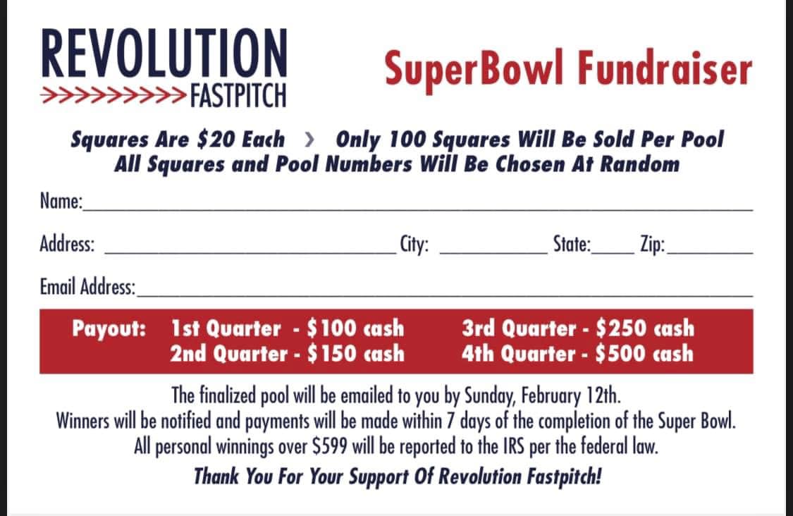 Madison Revolution Fastpitch is excited to bring back our favorite fundraiser – Revolution Superbowl Squares!