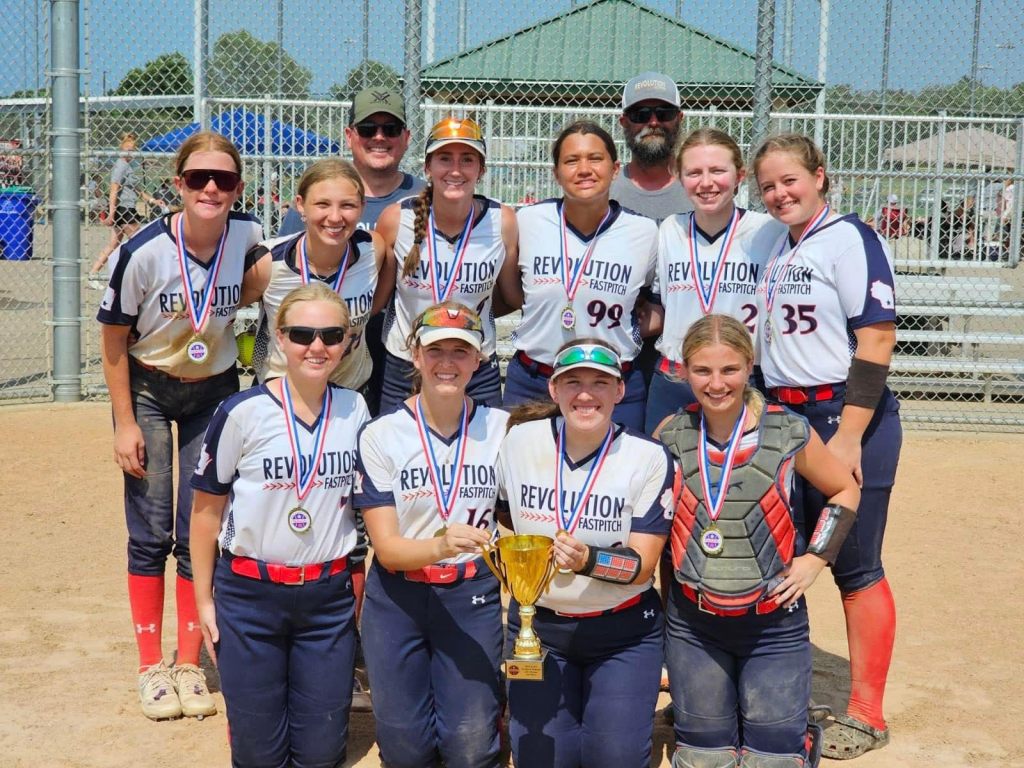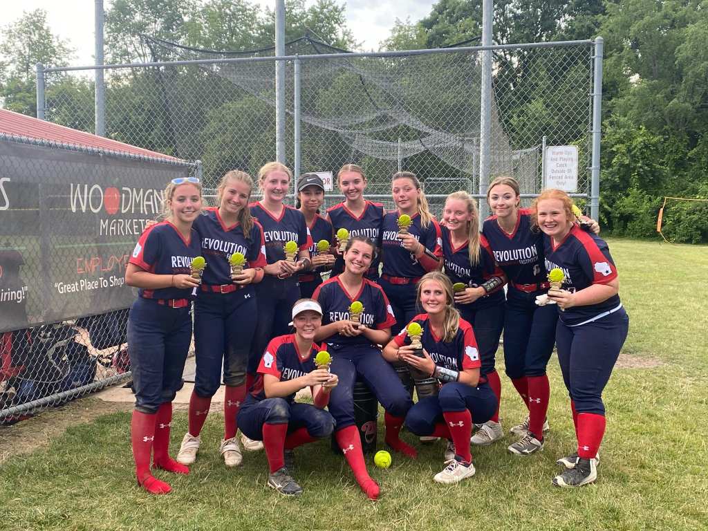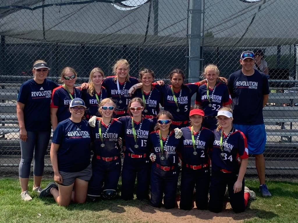 Revolution 16U Red took First Place at the Fastpitch Challenge in Oconomowoc, June 2022.
