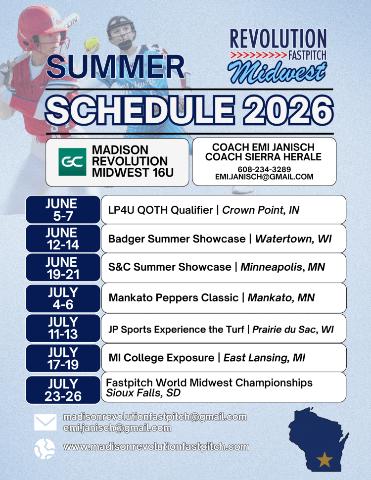 Madison Revolution Midwest consists of 2027 and 2028 graduates who are actively pursuing recruiting opportunities. Please see the below roster for player-specific information.